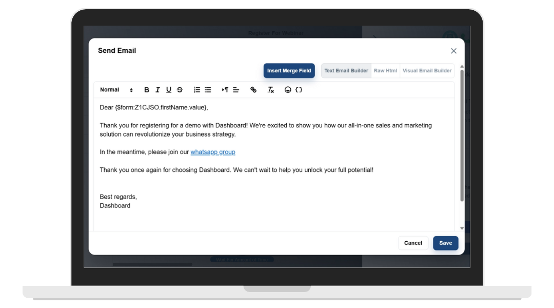 Streamline your business with our powerful automation builder! Automate tasks, set up workflows, and trigger actions across your marketing tools, saving you time and boosting efficiency. Perfect for businesses looking to scale with ease!
